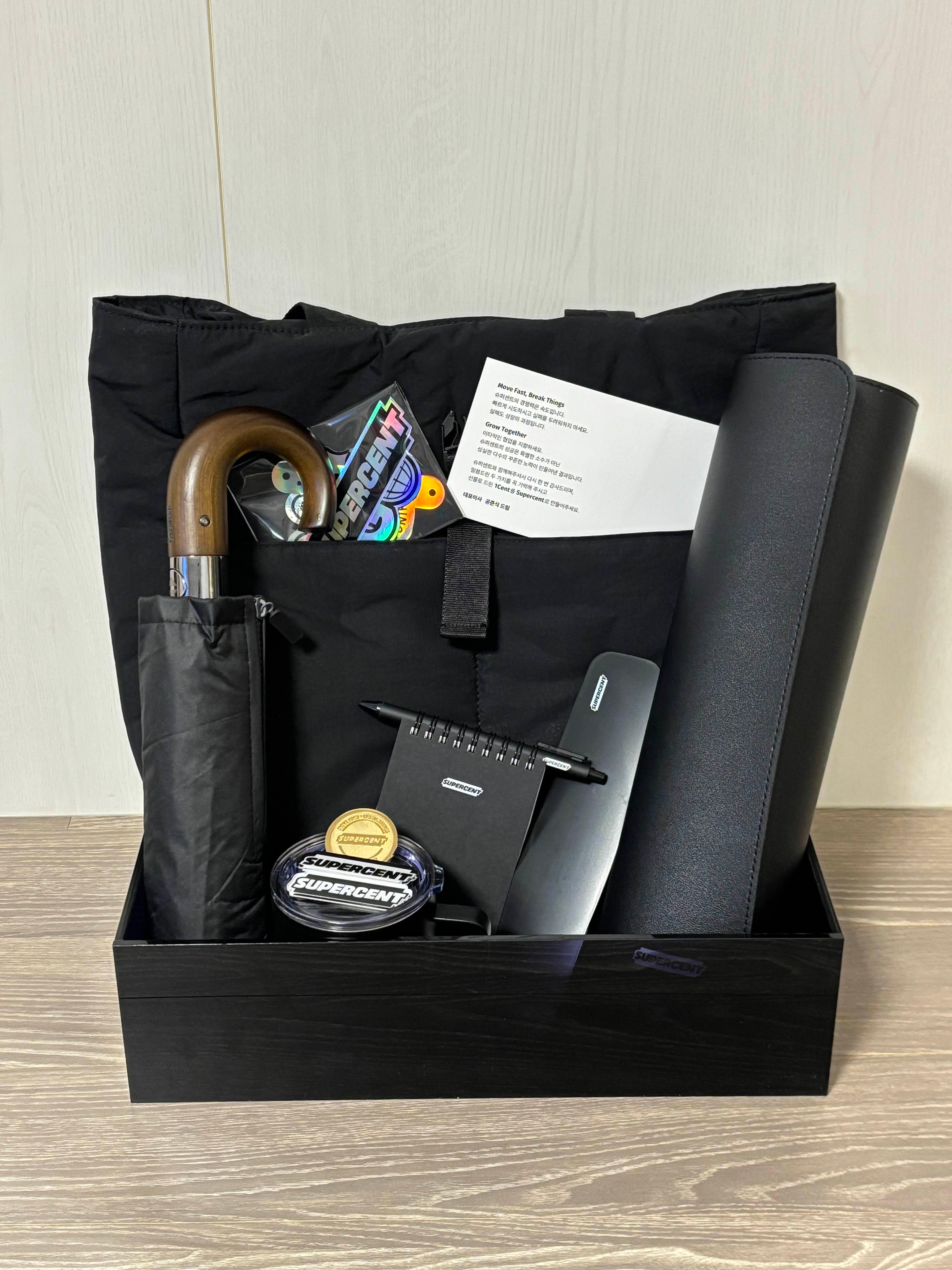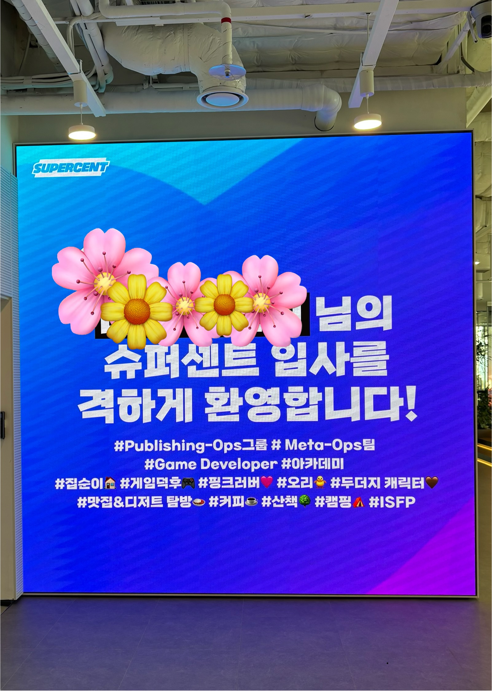 아래 사진은 입사 첫 날 전광판과 웰컴키트입니다!